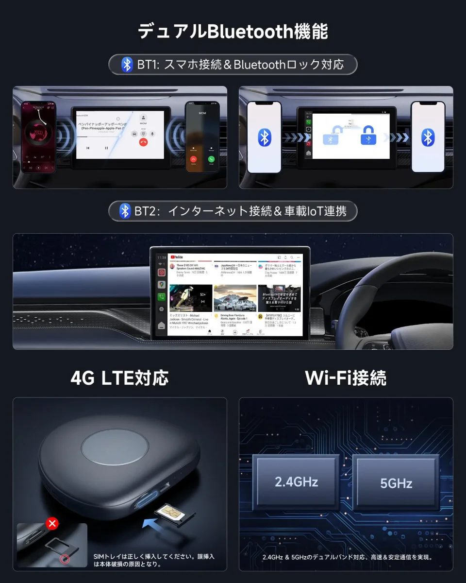 【50% OFF】ATOTOMOVE ワイヤレスCarPlayアダプター Android AIボックス CB6C iPhone&Android Auto対応 ChatGPT搭載 車載用ビデオストリーミング YouTube・Netflix・TikTok対応 4G LTE 4GB+64GB プラグ&プレイ