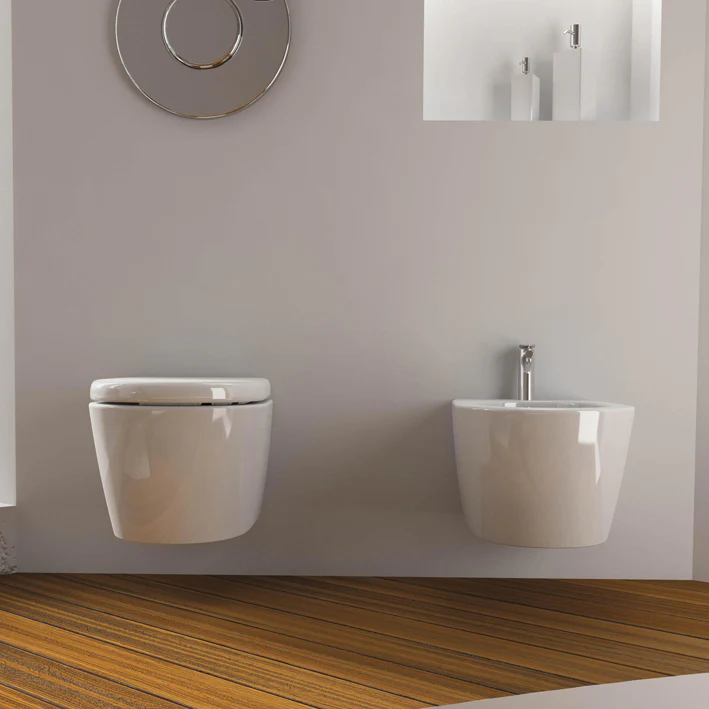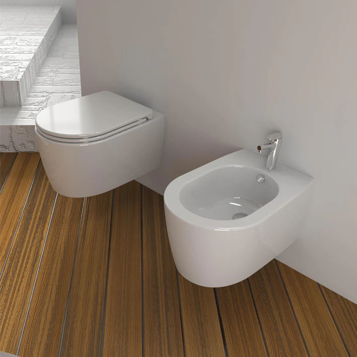 Bidet filo parete in ceramica smaltata bianco lucido, prodotto ad alta pressione e di qualità eccellente, con istallazione sospesa. Si presenta già con il foro centrale per il montaggio del miscelatore (escluso dal prezzo esposto). L’articolo è completo di kit di fissaggio.