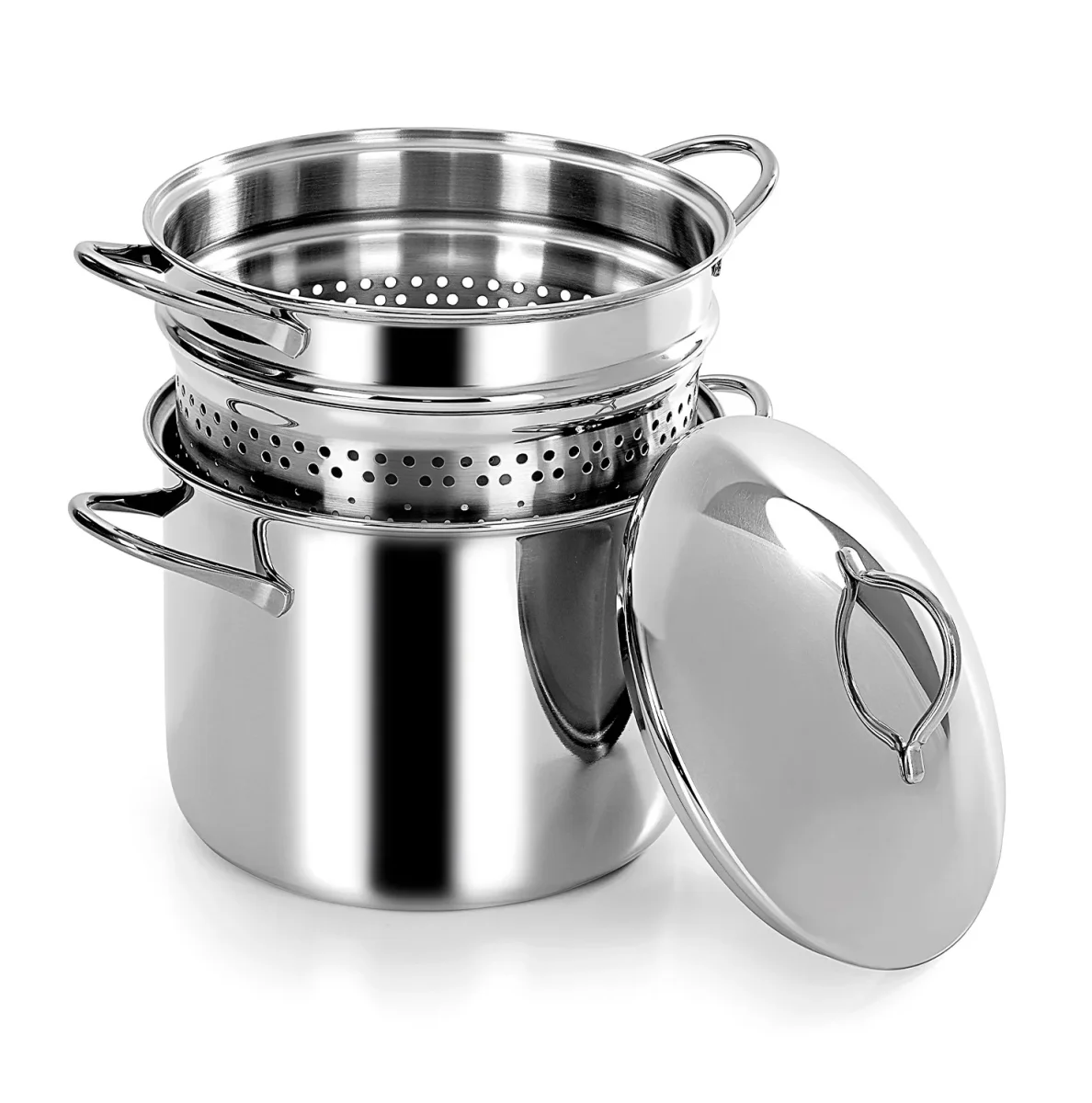 Si può utilizzare per cuocere ogni tipo di pasta o anche le verdure al vapore, così facendo si conserva nel cibo un’alta percentuale di sali minerali, ottenendo cibi leggeri, dal sapore delicato e dal notevole valore nutrizionale. È stata ideata per consentire anche la facile e sicura scolatura dei cibi dopo la cottura. Adatta a tutti i piani di cottura, compresa l’induzione.