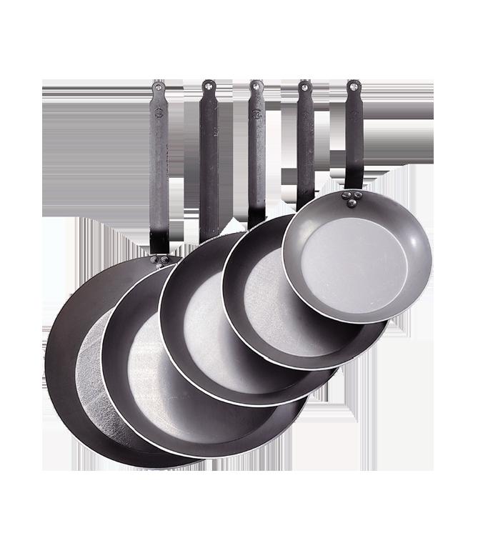 de Buyer ha realizzato la linea Carbone Plus in un acciaio spesso così ferroso da potersi considerare più semplicemente ferro con l’aggiunta di pochissimo carbonio. La padella di ferro, o molto ferrosa, e spessa è l’ideale per friggere, cuocere bistecche, rosolare carni.