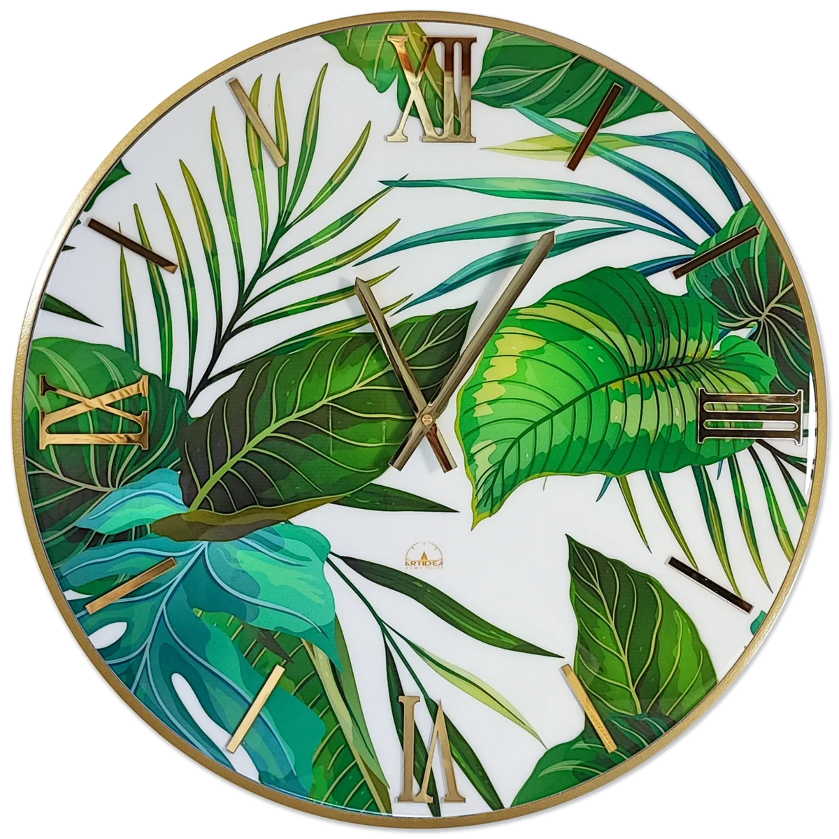 Orologio circolare con quadrante lucido, decorato a mano con foglia oro e numeri sovrapposti in Plex lucido con effetto specchio.