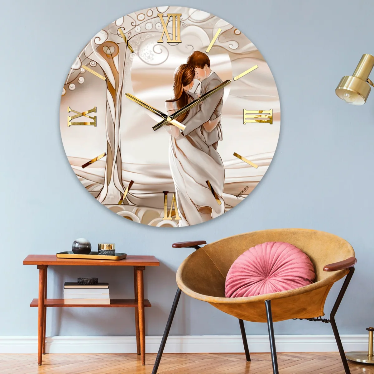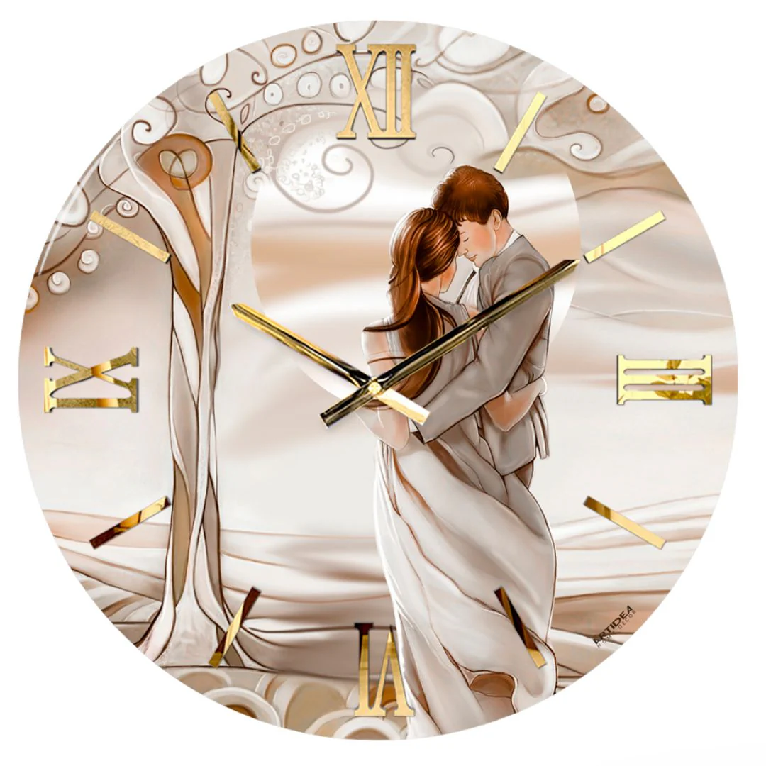 Orologio circolare con quadrante lucido, decorato a mano con foglia oro e numeri sovrapposti in Plex lucido con effetto specchio.