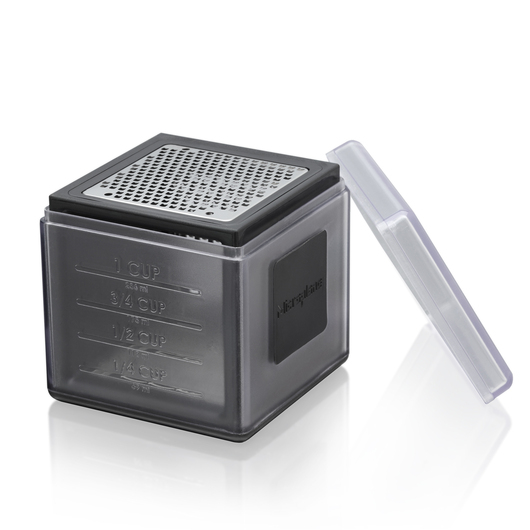 Microplane Cube grattugia nera è una grattugia con la possibilità di scegliere con facilità tra 3 diversi tipi di lame in acciaio: lama fine, lama zester/grattugia e lama doppia. Ideale per parmigiano, scorze di agrumi, noce moscata, zenzero, curcuma, aglio, cipolla, cioccolata, cocco, cavolo rosso, patata, carota, formaggi a pasta dura. La grattugia di forma cubica è alloggiata in una scatolina da 350 millilitri, anch’essa di forma cubica e con il coperchio, in grado di mantenere al suo interno gli alimenti grattugiati. La base è antiscivolo. Colore nero.