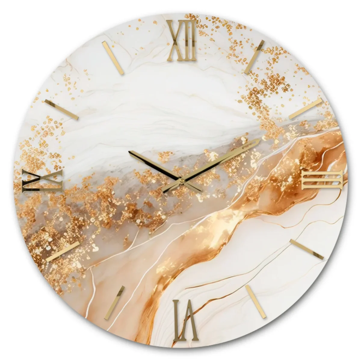 Orologio circolare con quadrante lucido, decorato a mano con foglia oro/argento e numeri sovrapposti in Plex lucido con effetto specchio.