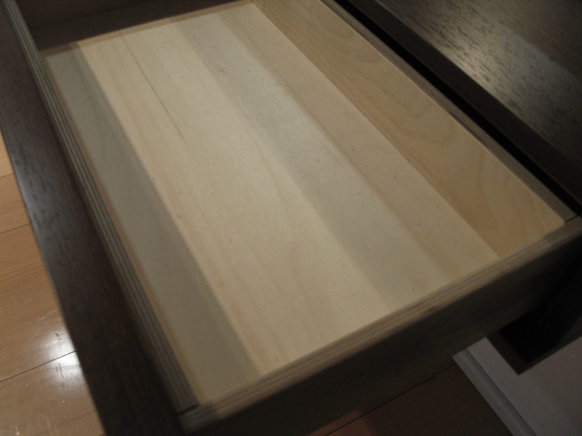Frontale Cassetto: spessore 3 cm. – interno cassetti in multistrato di betulla con guide a scomparsa estrazione totale.